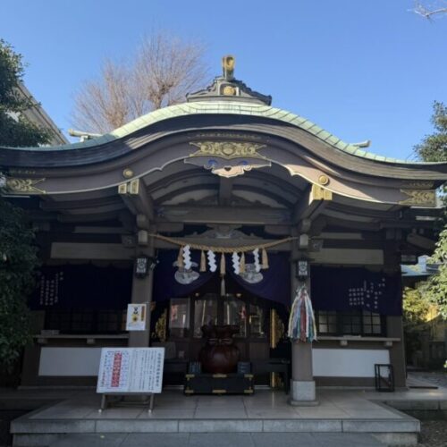 もともとは鬼子母神堂の境内に「鷺明神」として創建され、神仏分離を経て現在の地に鎮座した背景が、地域の記憶として建築に息づいています。境内は都電通りに面していますが、参道を一歩進むごとに周囲の雰囲気が次第に変化し、日常的な都市空間から静かな聖域へと気持ちを切り替える段階的な動線構成が感じられます。かねてよりこの都電沿いの通り一帯は住宅地であり、両脇に残る入口から境内へ入っていたようです。また、現在は雑司が谷七福神の恵比寿神を担い、氏子の範囲も目白駅方面まで広がるなど、地域との結びつきの強さがうかがえます。9月の例大祭や11月の酉の市をはじめ、地域イベントの場としても活用されており、人々の交流を支える拠点として機能している点が印象的でした。境内にはおみくじも置かれており、訪れた際に引いてみてはいかがでしょうか。(MAP赤32)S.M.